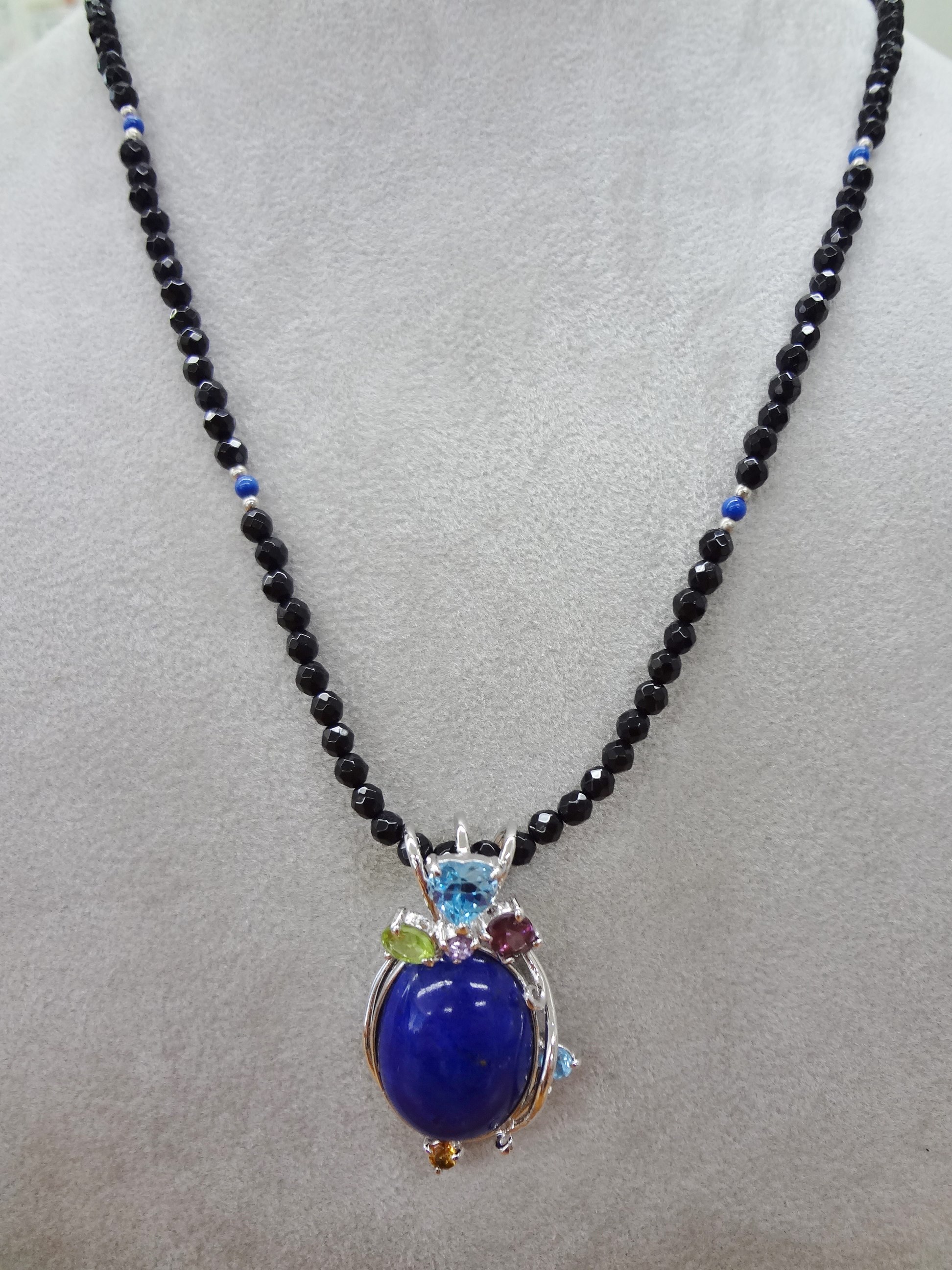 SVラピス オニキス ブルートパーズ ロードライトガーネット ペリドット アメジスト シトリン ネックレス 45㎝