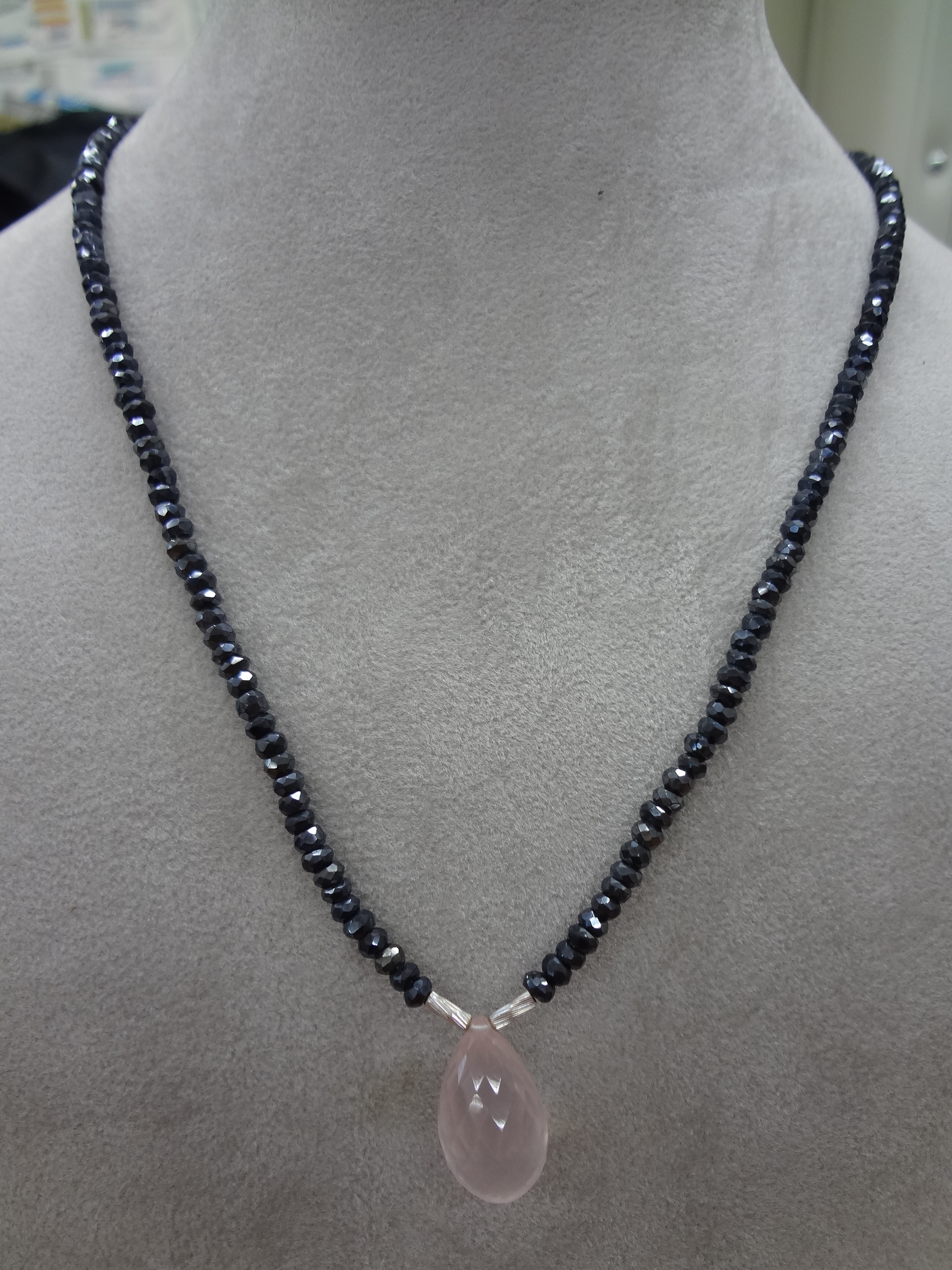 K18WG ローズクウォーツ スピネル ネックレス 42㎝