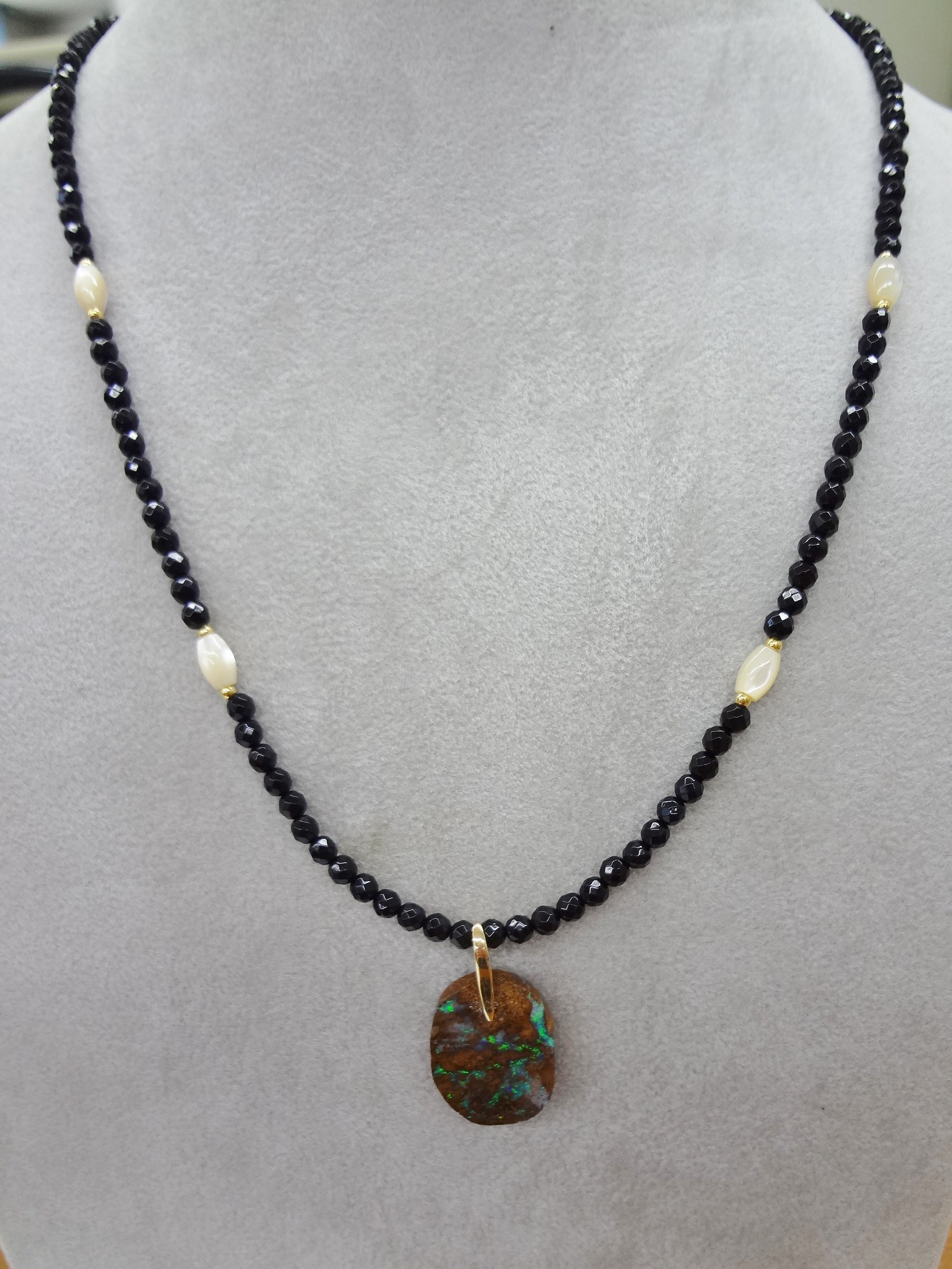 K18 ボルダーオパール オニキス ネックレス 48㎝