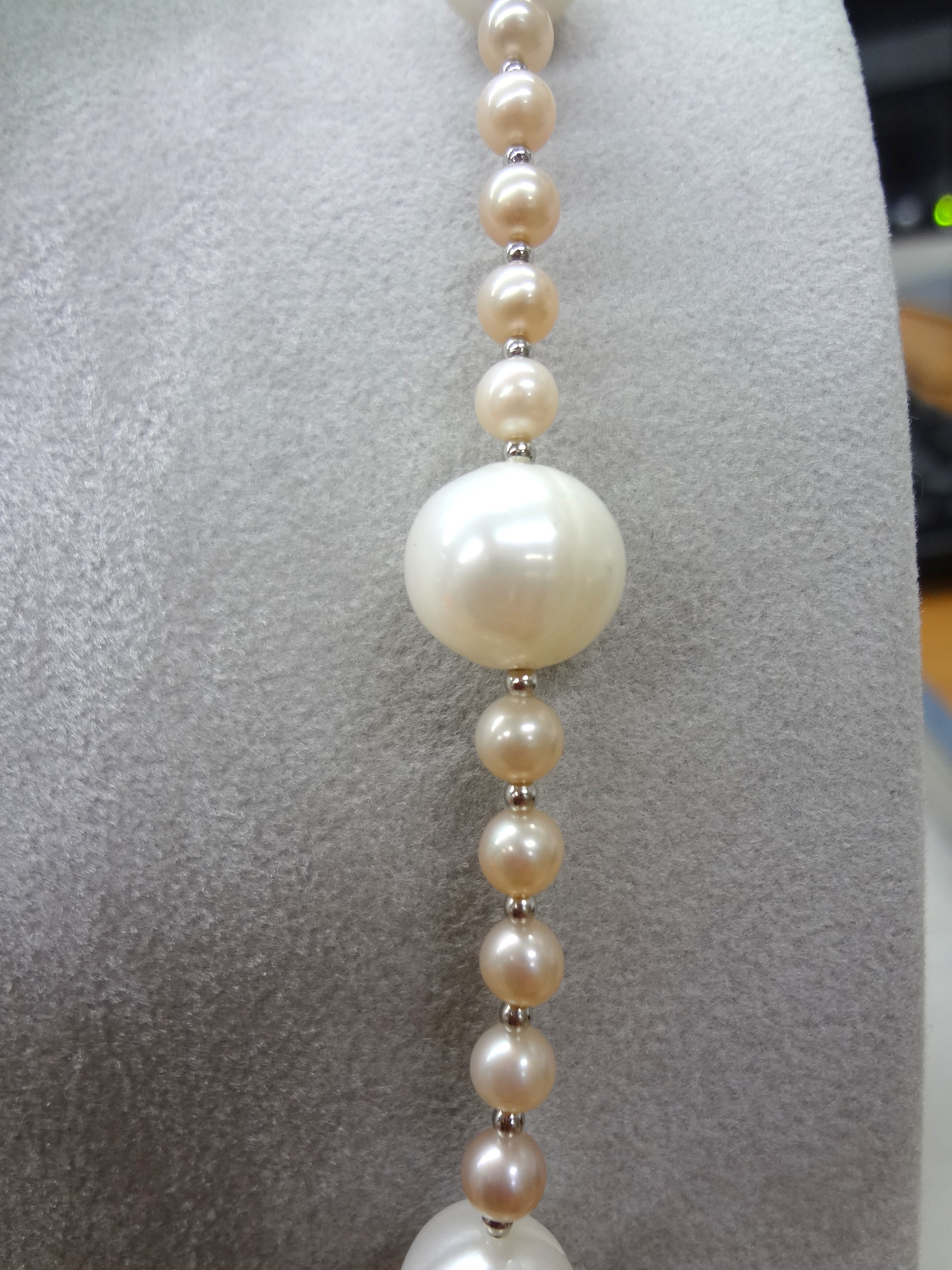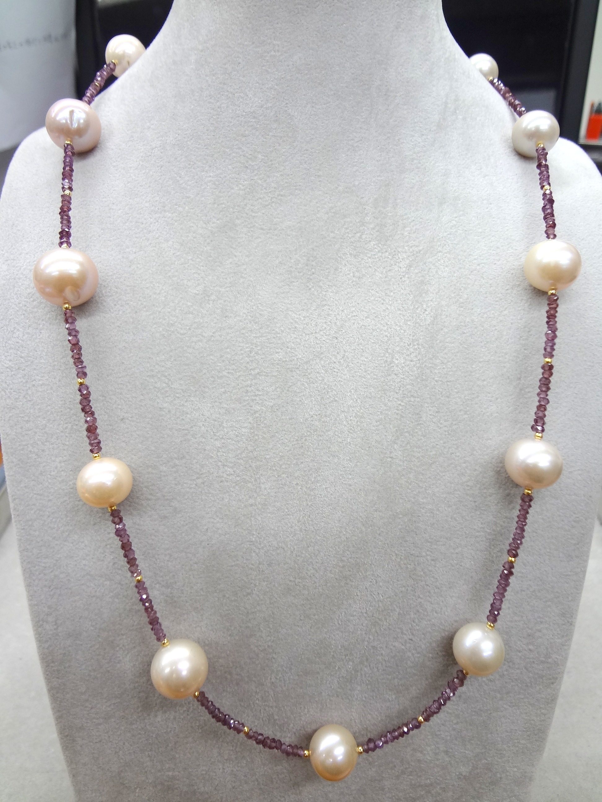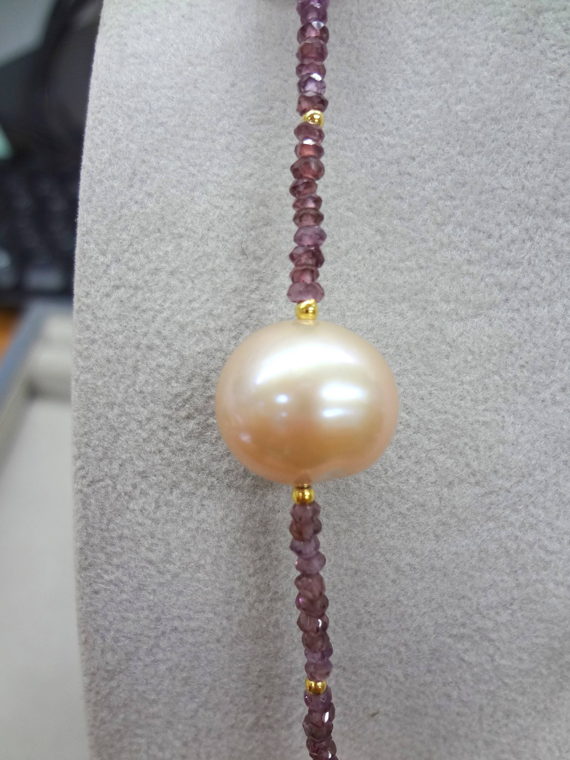 淡水パール ロードライトガーネット ネックレス 68㎝