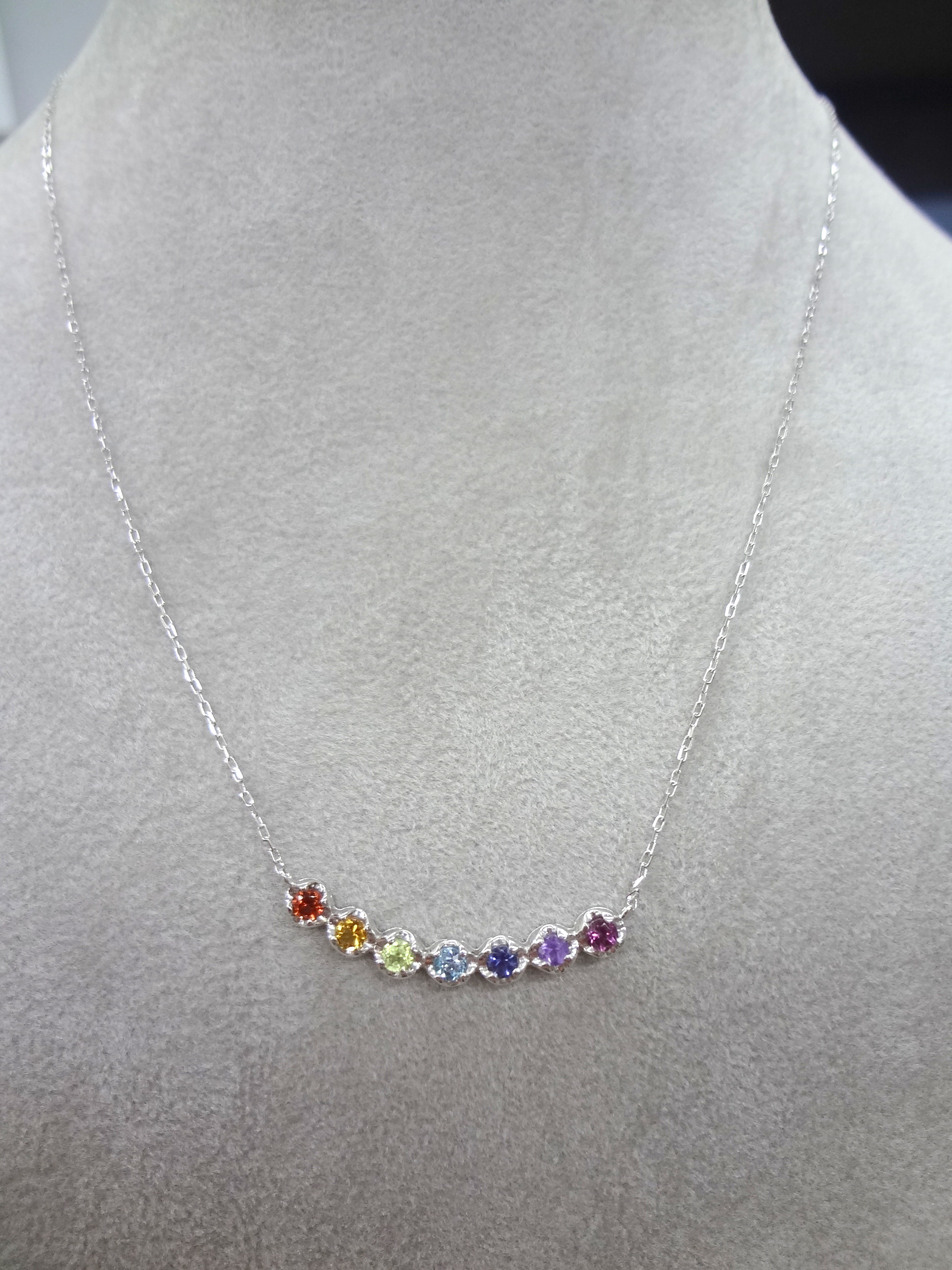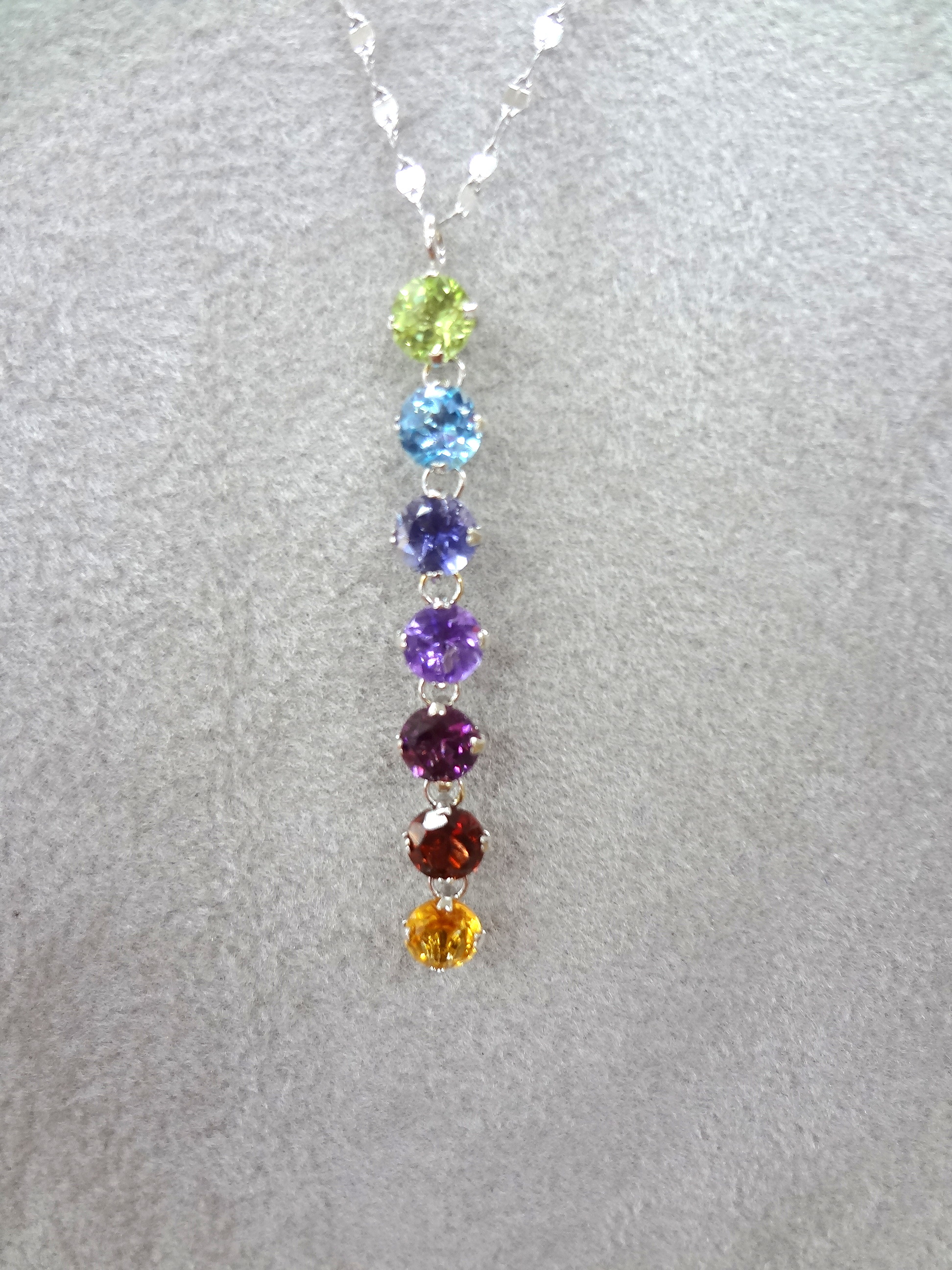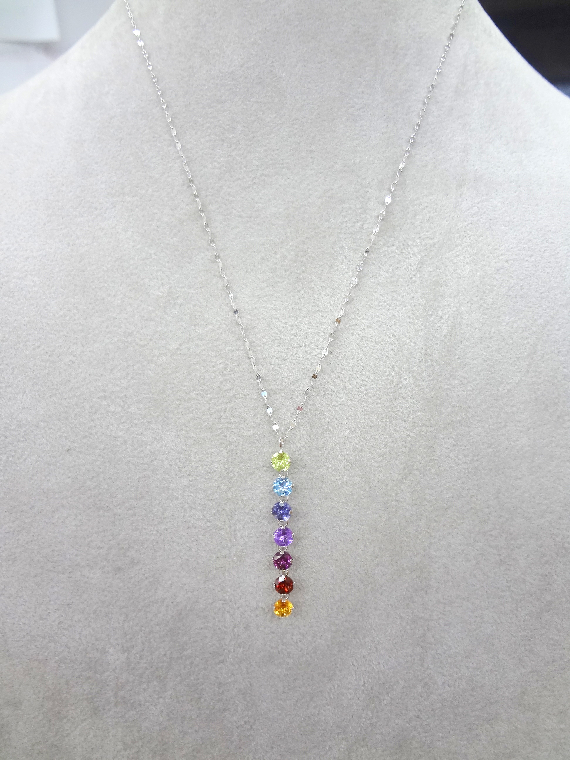 幸せを運ぶ、厄除けのお守りなど、ハッピーな力があるといわれる七色の宝石のジュエリーです。昔から、日本では「七色のもの」「長いもの」を厄年の女性に贈るとその厄が軽くなり、無事幸せに過ごせると言われているそうです。